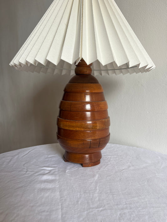 MID CENTURY WOODEN BEEHIVE TABLE LAMP
