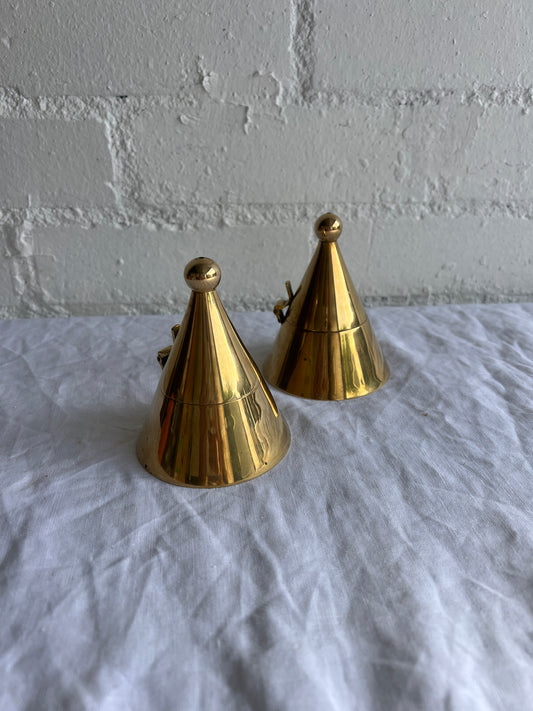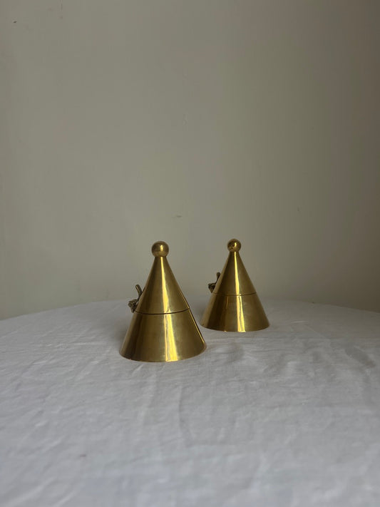 Sold outPAIR OF BRASS CONE TEA LIGHT HOLDERS