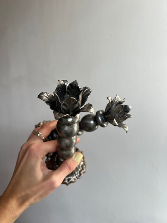 PAIR OF CHROME FLOWER BOBBIN CANDLE HOLDERS