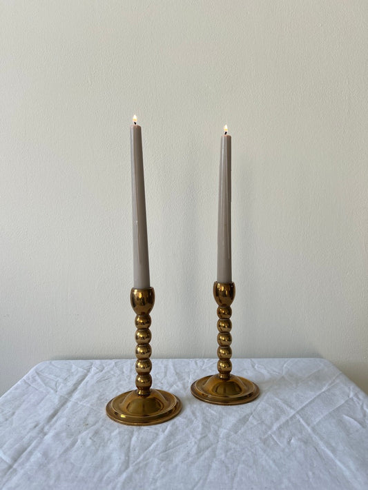 Sold outPAIR OF BRASS BOBBIN CANDLESTICKS