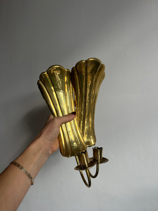 Sold outPAIR OF BRASS SCONCES