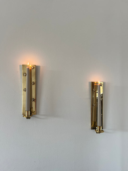 Sold outPair of brass star sconces