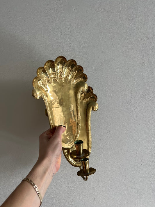 Sold outPAIR OF BRASS SEASHELL SCONCES