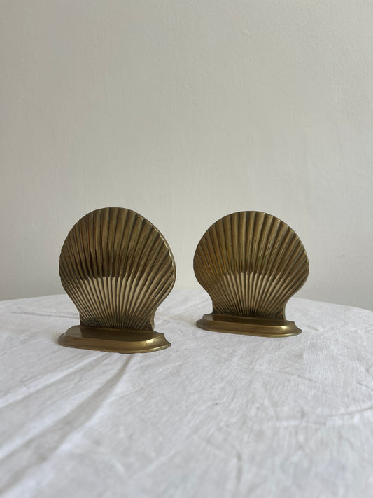 Pair of decorative brass seashell book ends