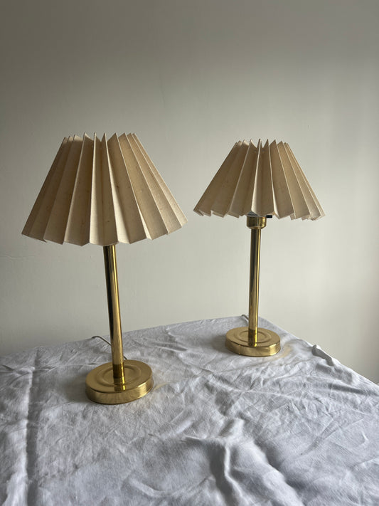 PAIR OF DANISH BEDSIDE LAMPS WITH PLEATED SHADES