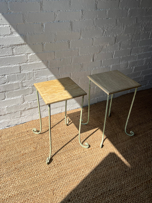 PAIR OF FRENCH SIDE TABLES WITH STONE TOPS