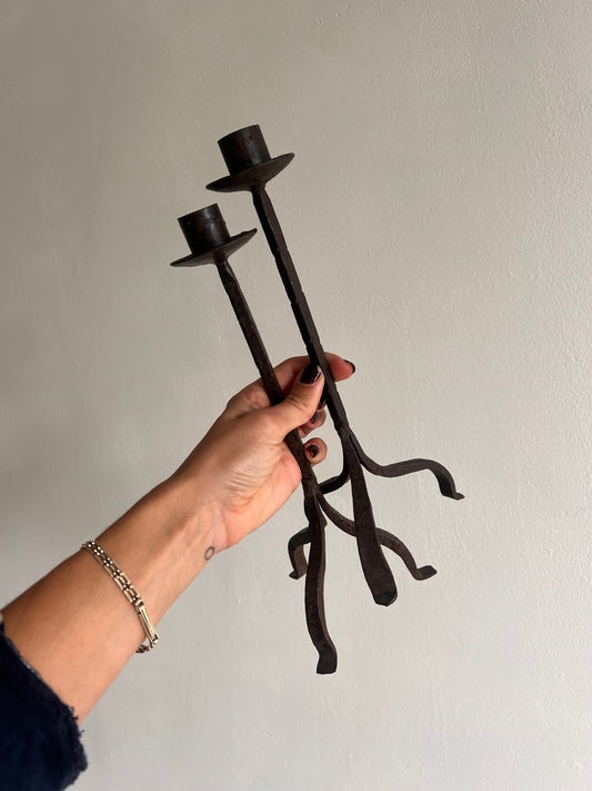Sold outPAIR OF IRON CANDLE STICKS