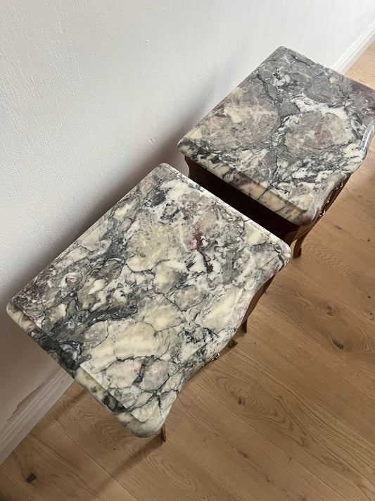 Sold outPAIR OF FRENCH MARBLE BEDSIDE TABLES