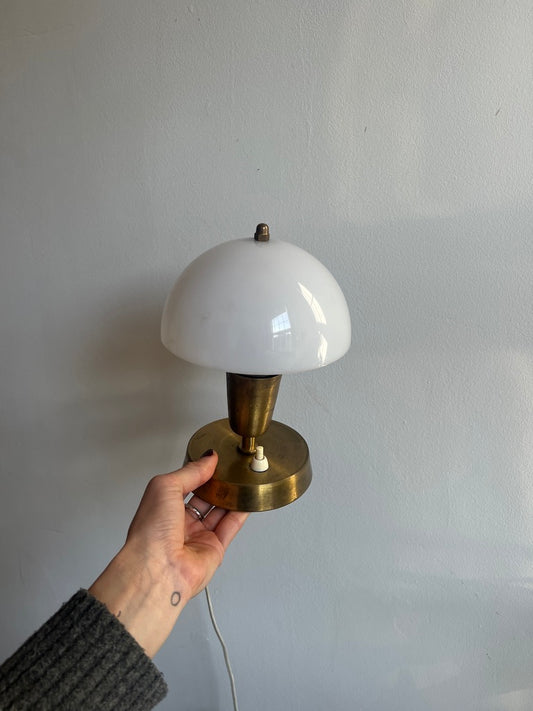 Sold outSMALL BRASS MUSHROOM SHADE LAMP