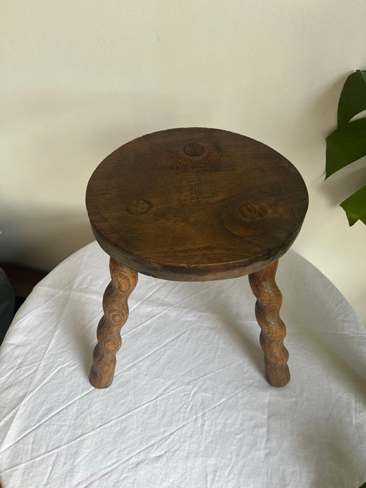 Small French tripod wiggle leg wooden stool