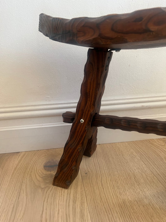 SMALL WOODEN CHALET SADDLE STYLE STOOL