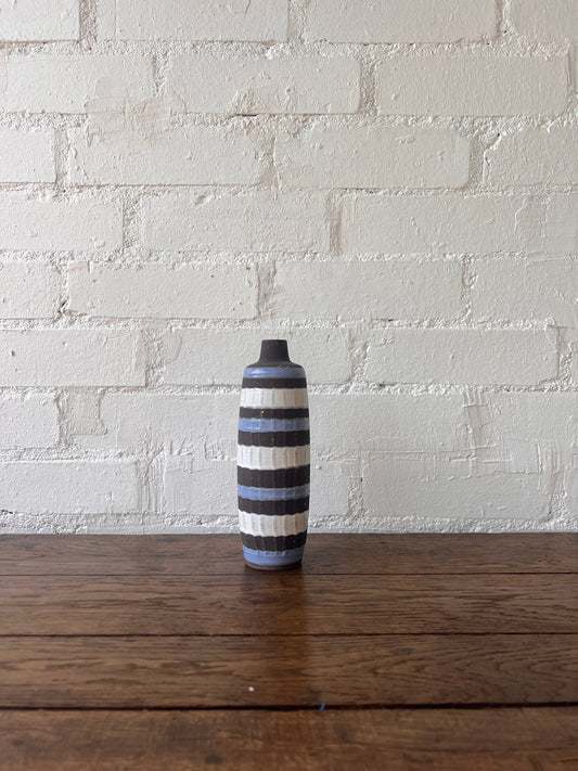 SMALL GERMAN STRIPE BLUE & BROWN VASE