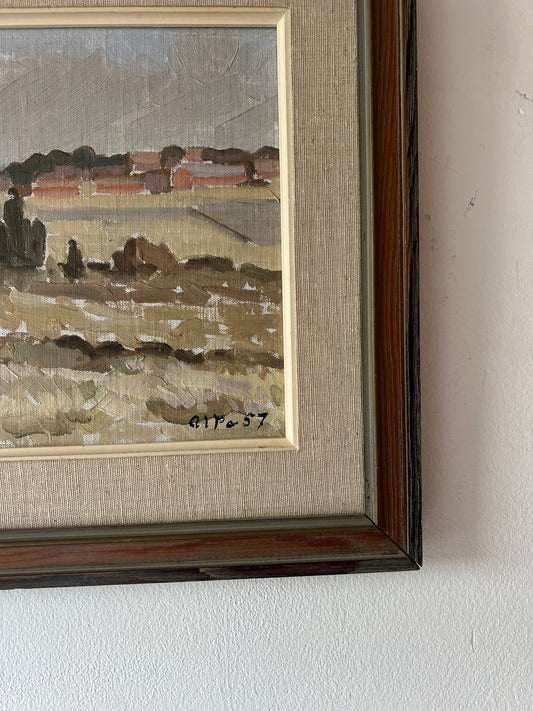 SMALL LANDSCAPE PAINTING IN BROWN FRAME
