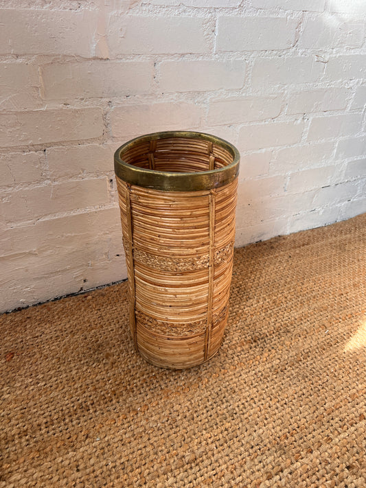 Sold outBRASS TABLE LAMP WITH RATTAN SHADE