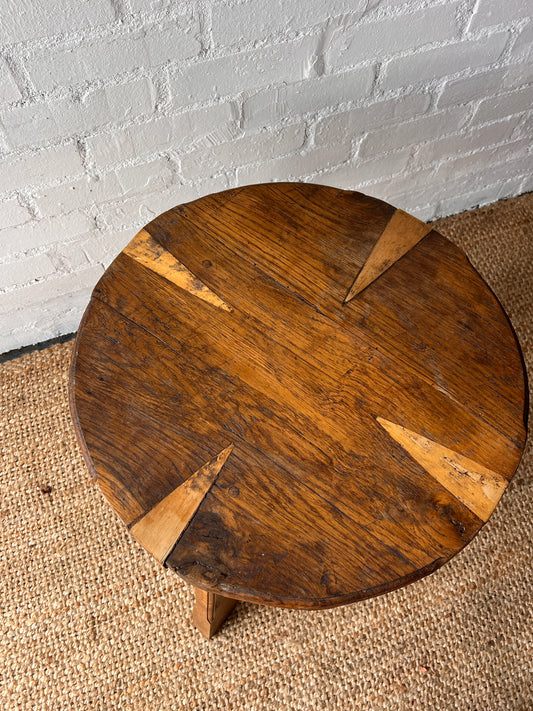 PAIR OF BRUTALIST SADDLE WOODEN STOOLS