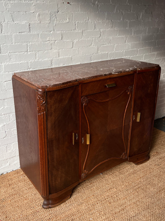 LARGE ART DECO RED MARBLE SIDEBOARD