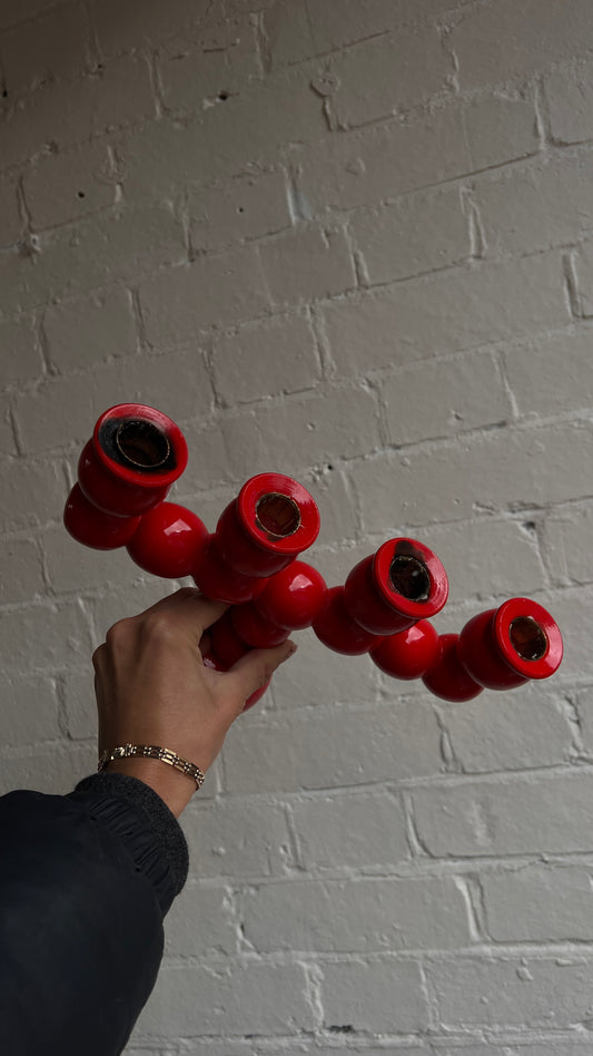 RED BOBBIN CANDLE HOLDER
