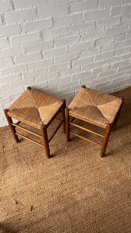 PAIR OF BRUTALIST SADDLE WOODEN STOOLS