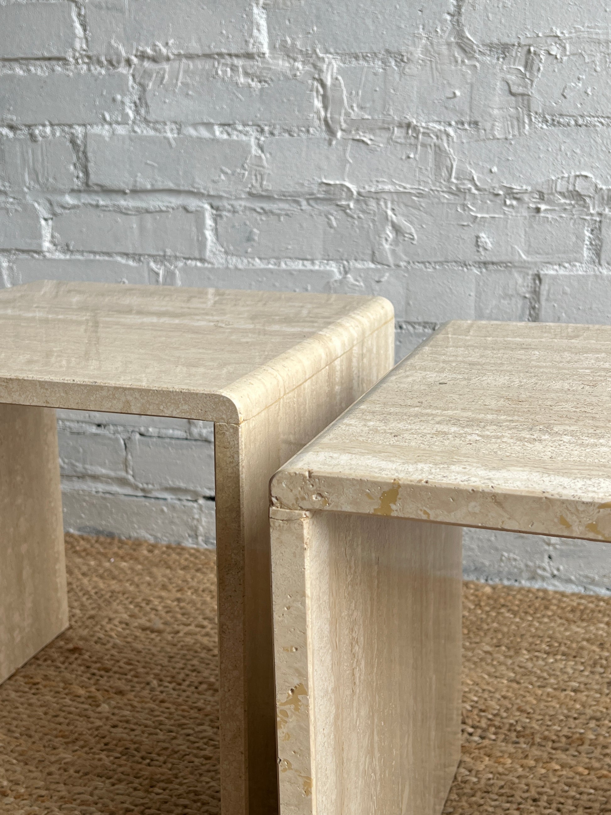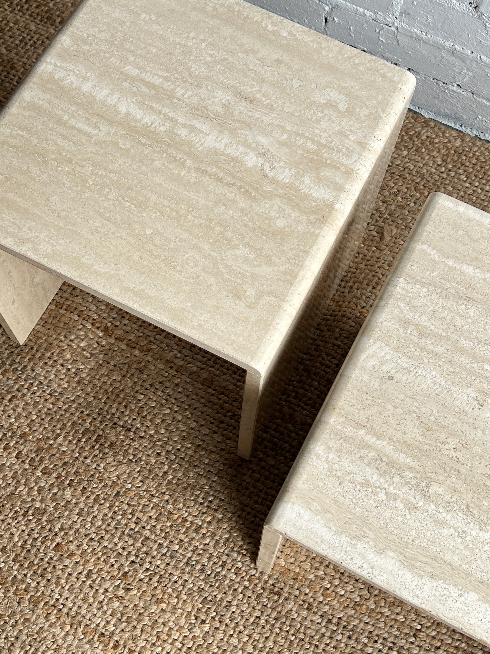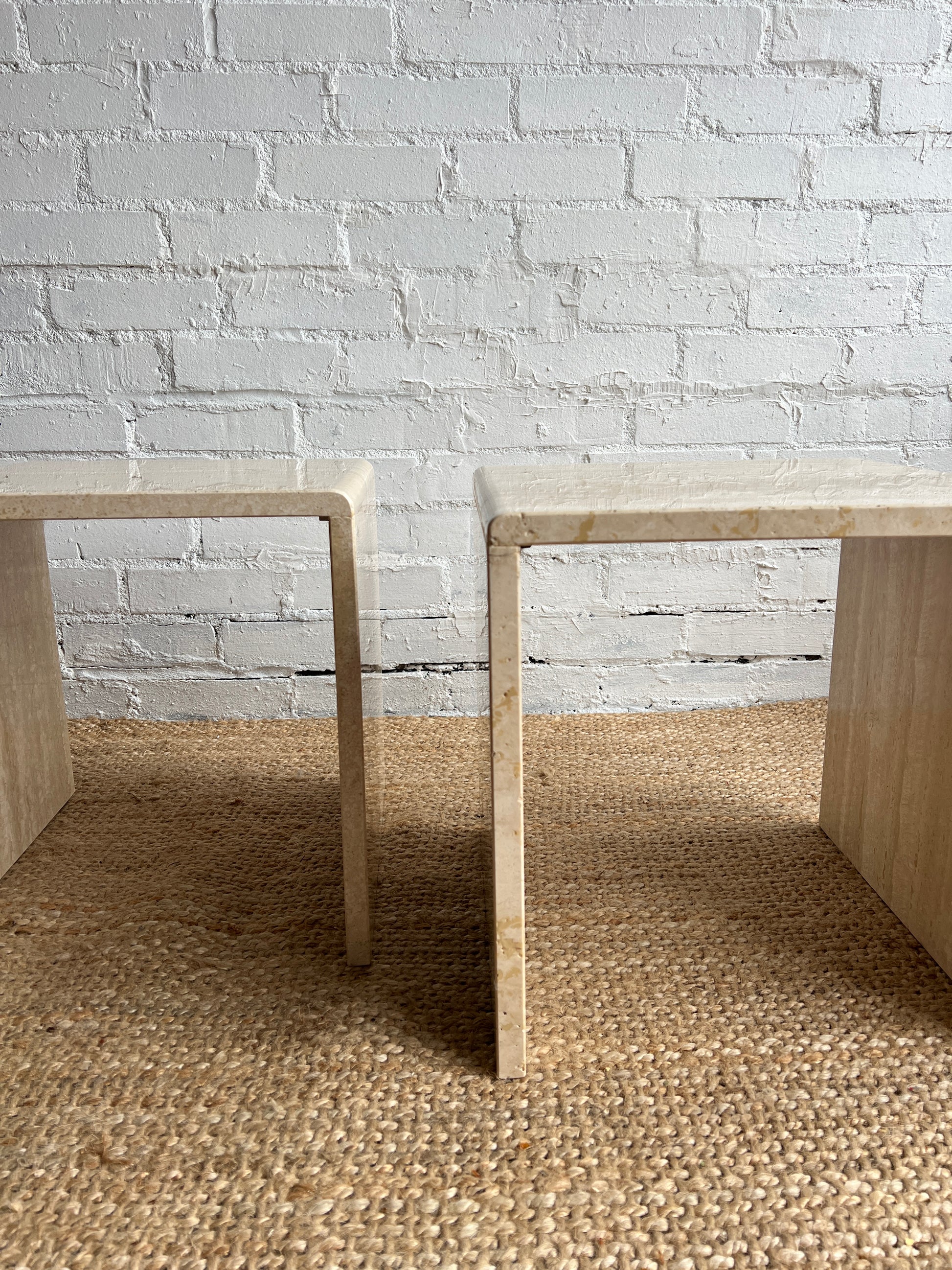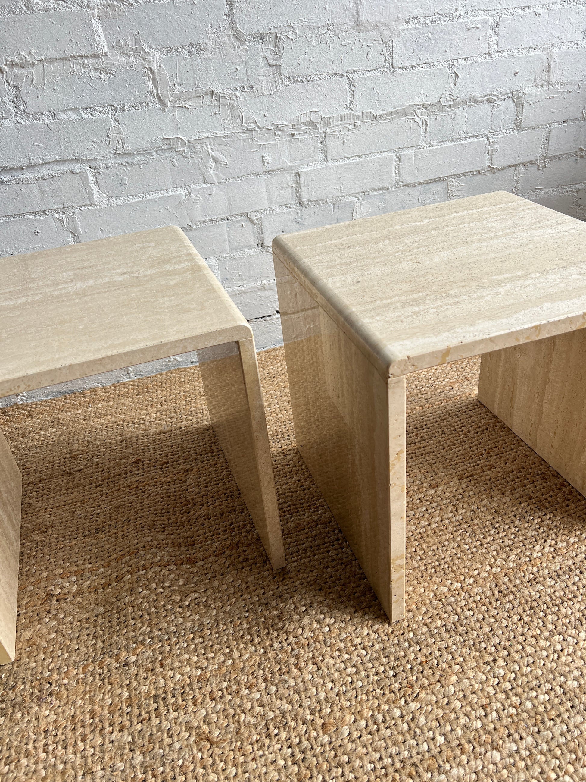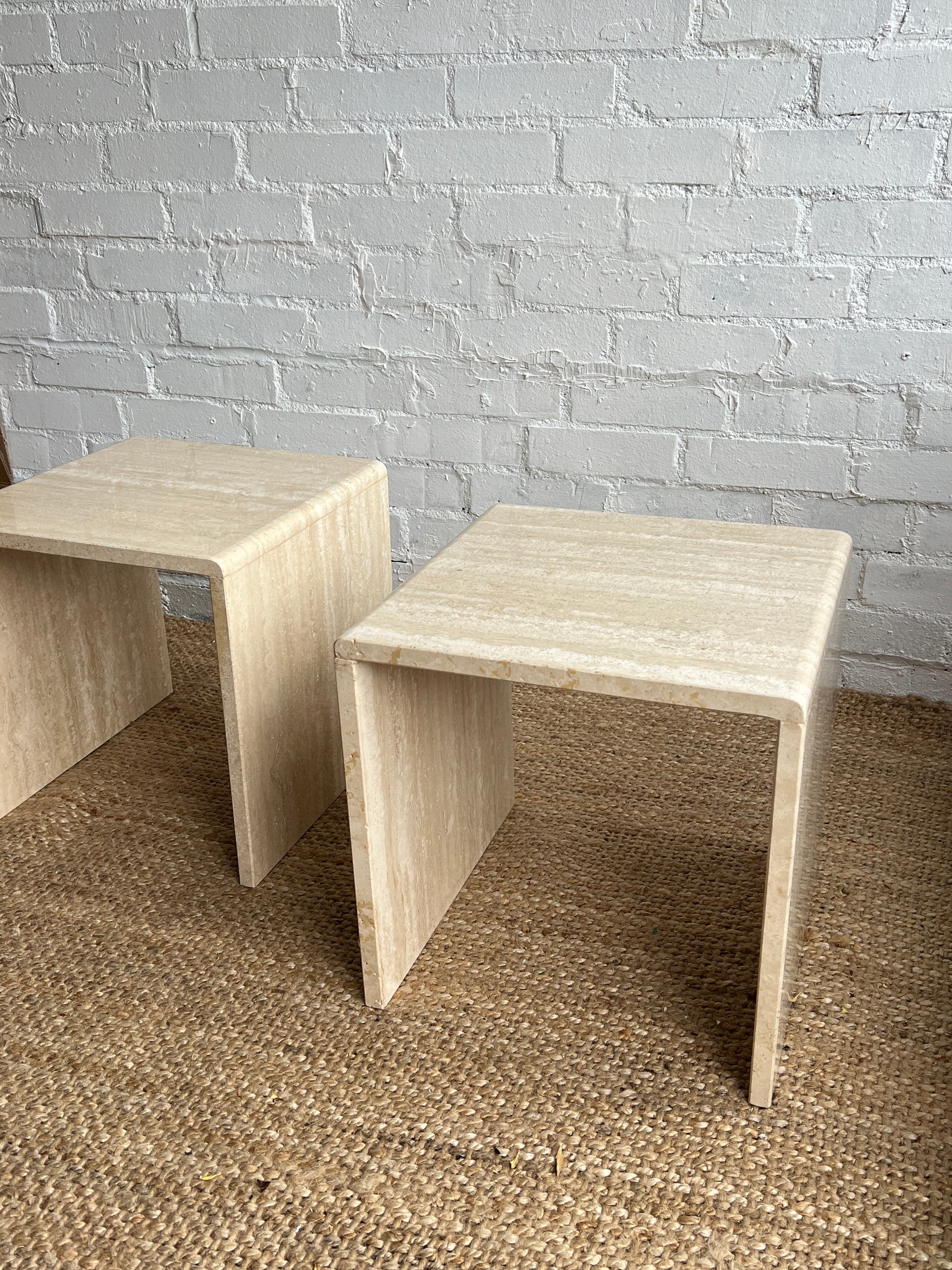 A perfect pair of low coffee or bedside tables – made of travertine, this cream pair are in excellent condition and are from France, dating back to the 80s. Sold individually. If you would like two, please add to your basket.