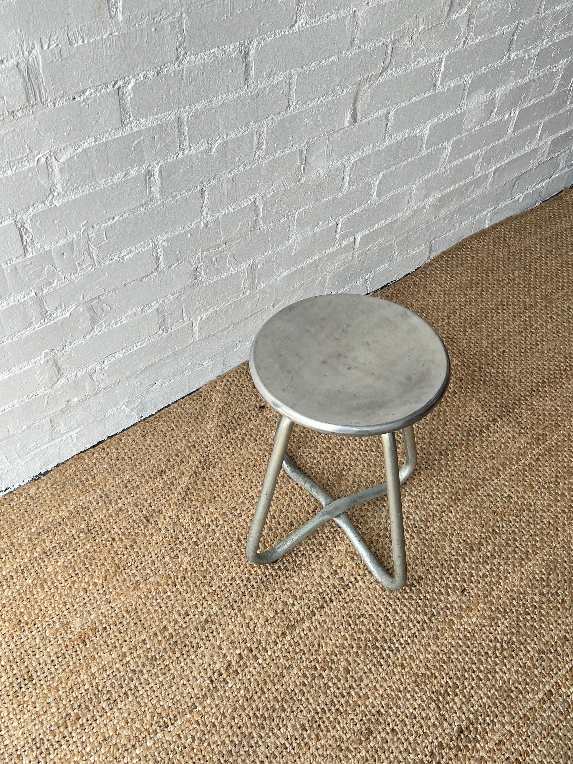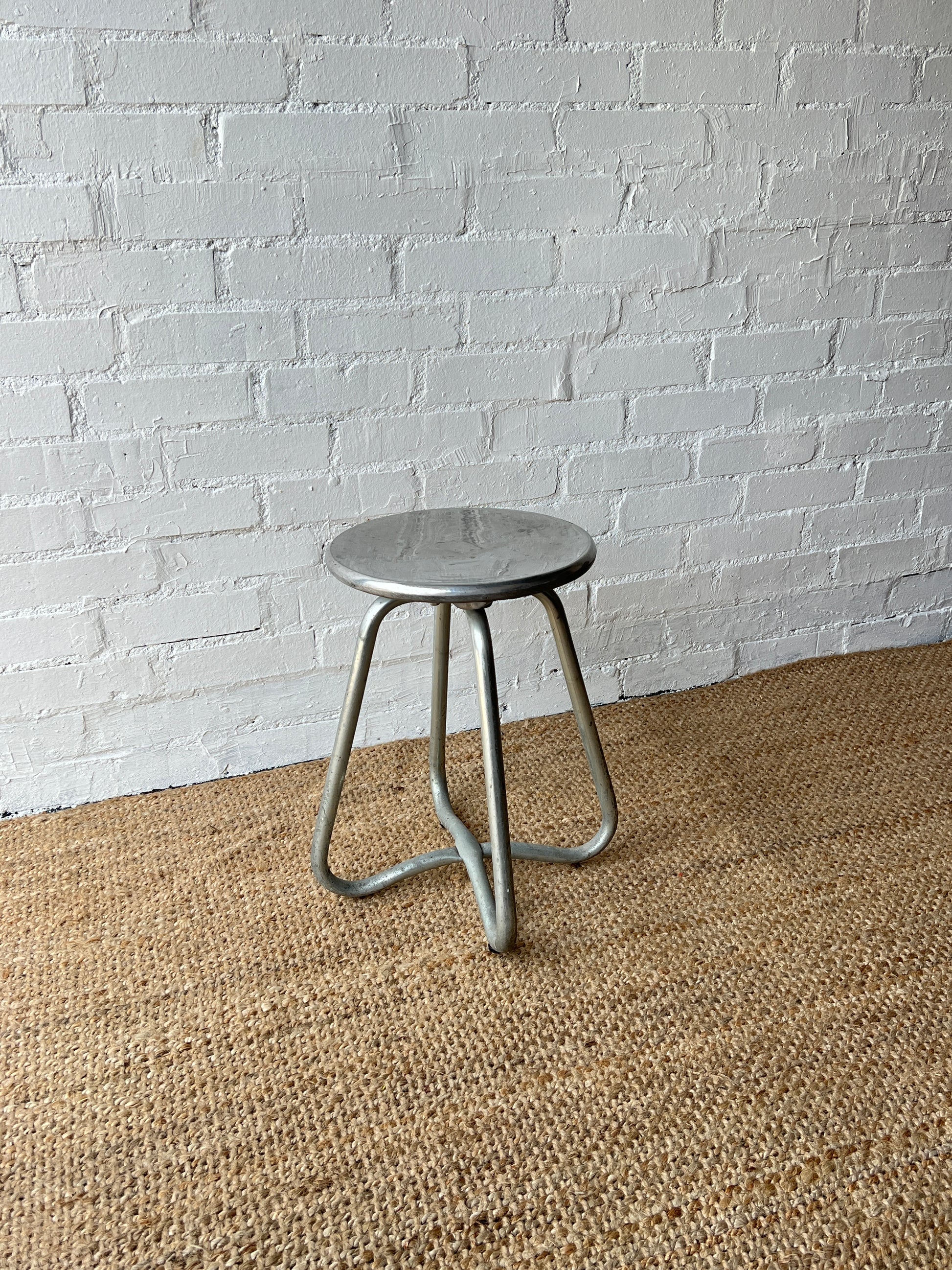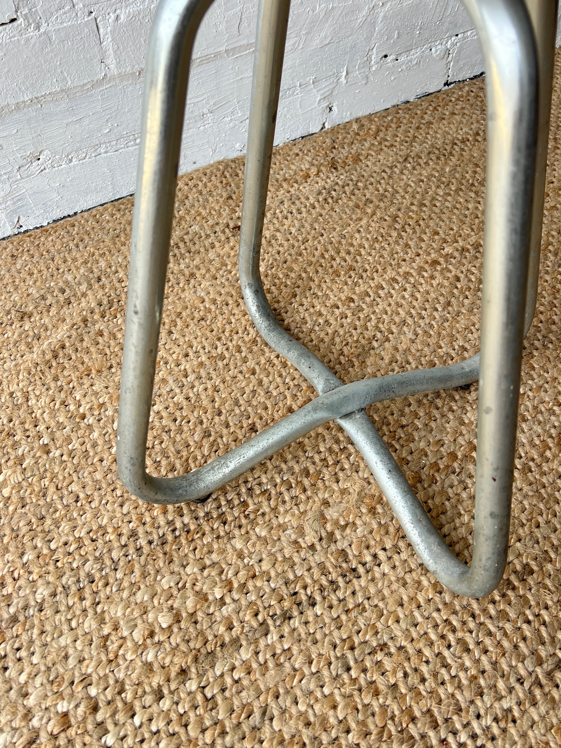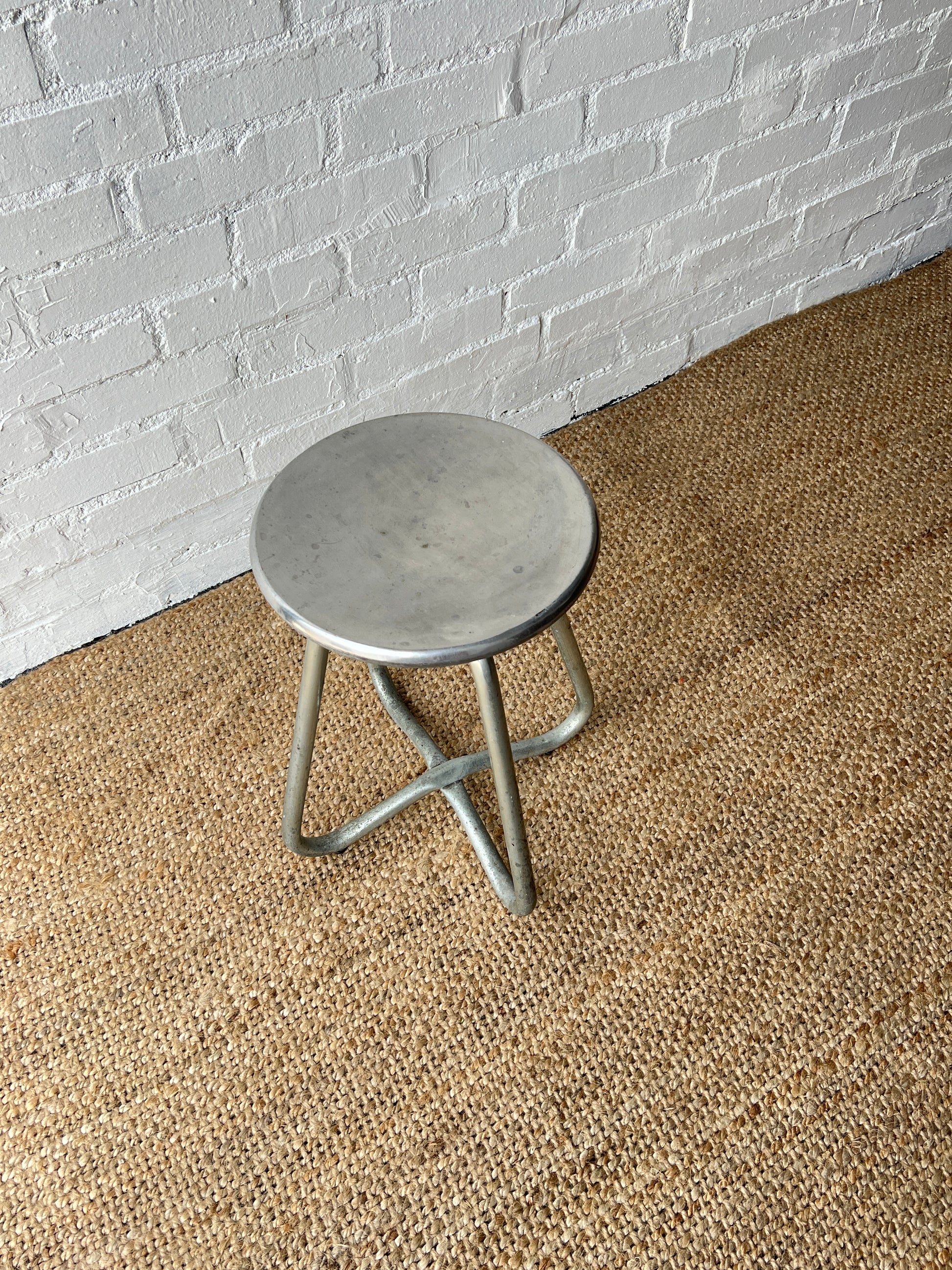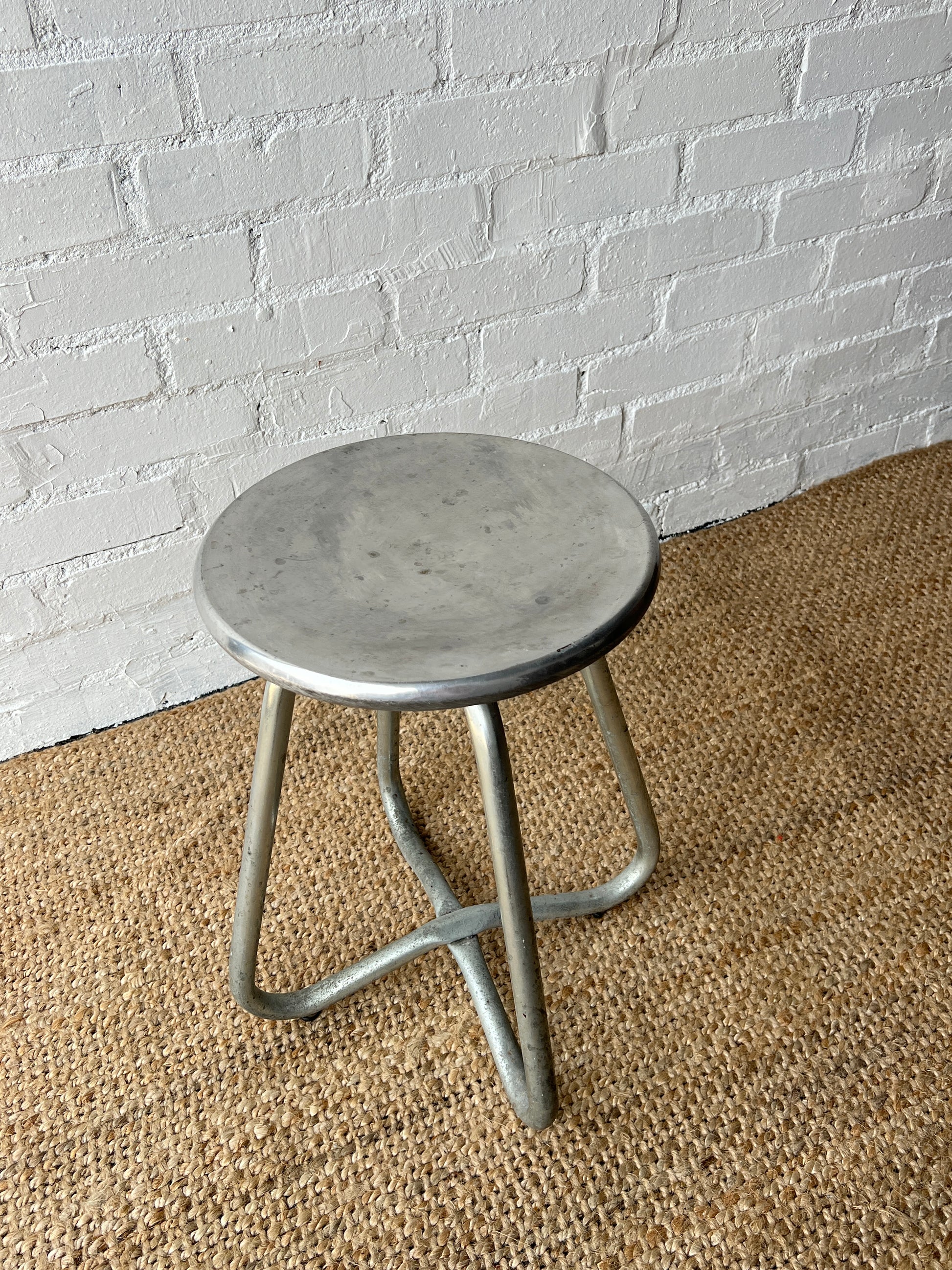 This metal stool is made of aluminium and likely manufactured by Habitat in the 80s. There are a few marks on the top, see pictures but overall this is a very iconic & sturdy piece that has a very industrial feel.
