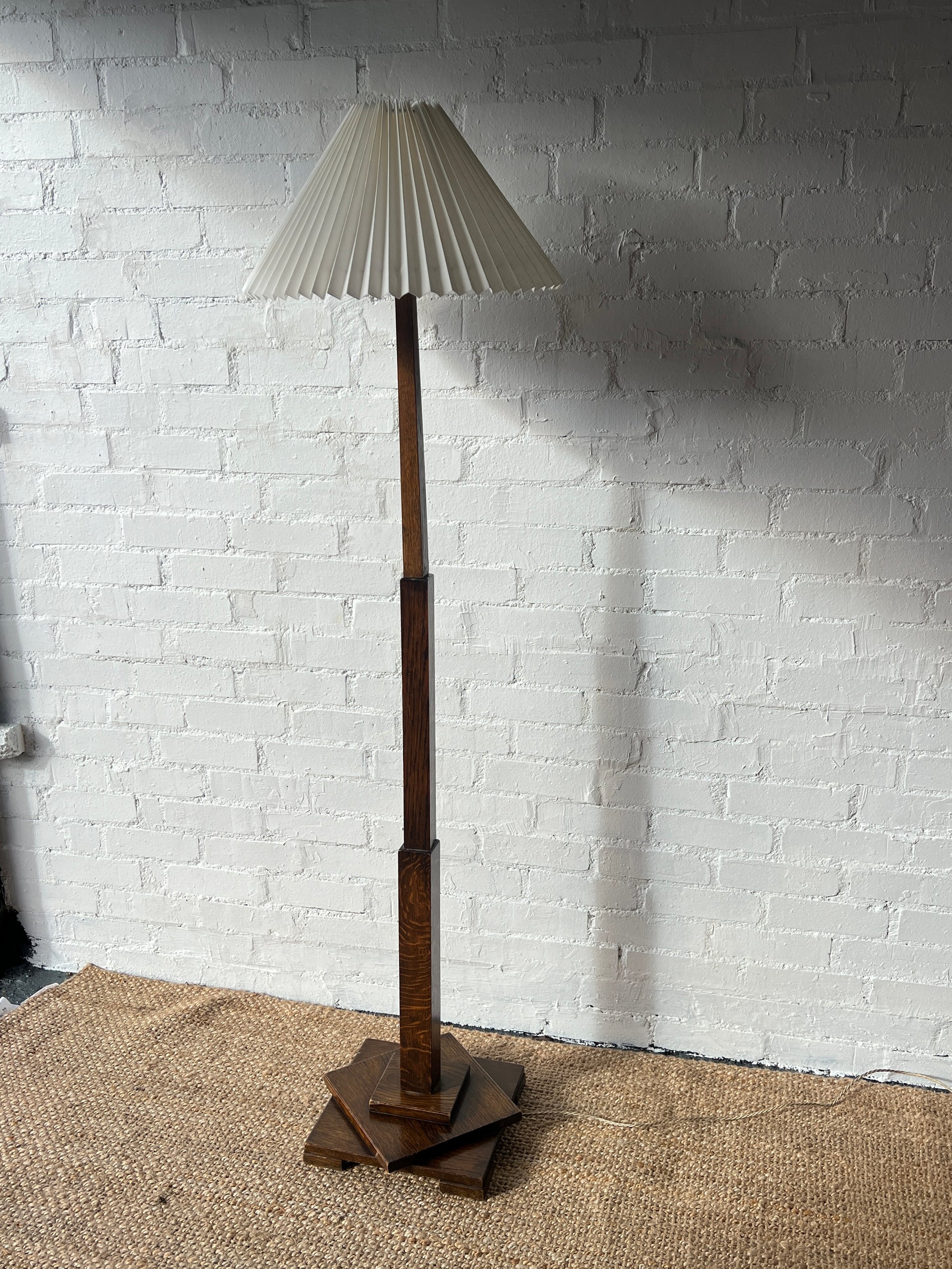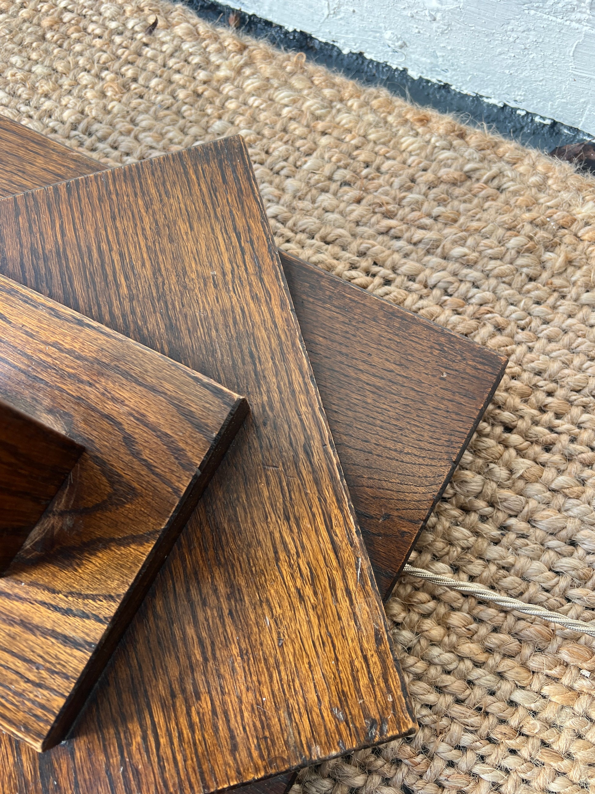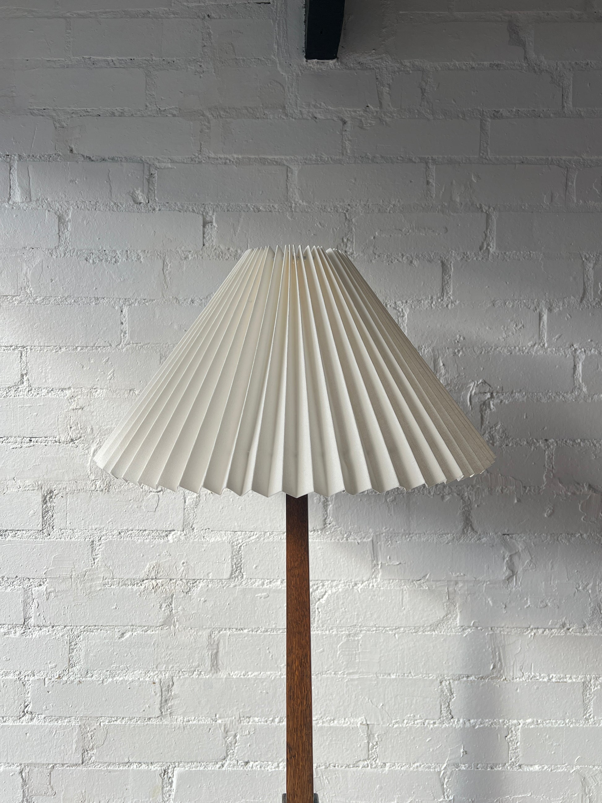 Made of solid wood with a rich grain, the base on this lamp is incredible. Geometric in its form, the pleated shade gives a contemporary edge. The stem is made up of three rectangular pieces. The middle section doesn't line up exactly but I think these imperfections are what makes these pieces feel special (see last picture).