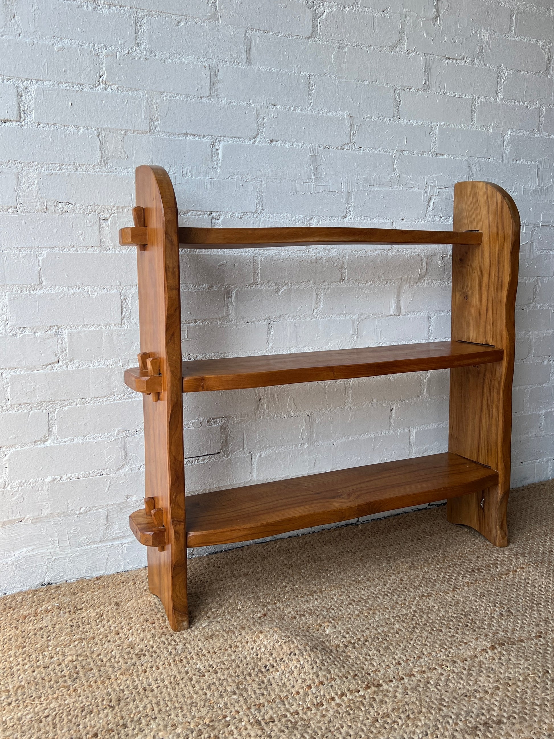 These shelves date back to the Mid Century and I love the organic wavy lines on the shelves. The wooden pins on the edge are what hold the shelves in place which are a nice detail.