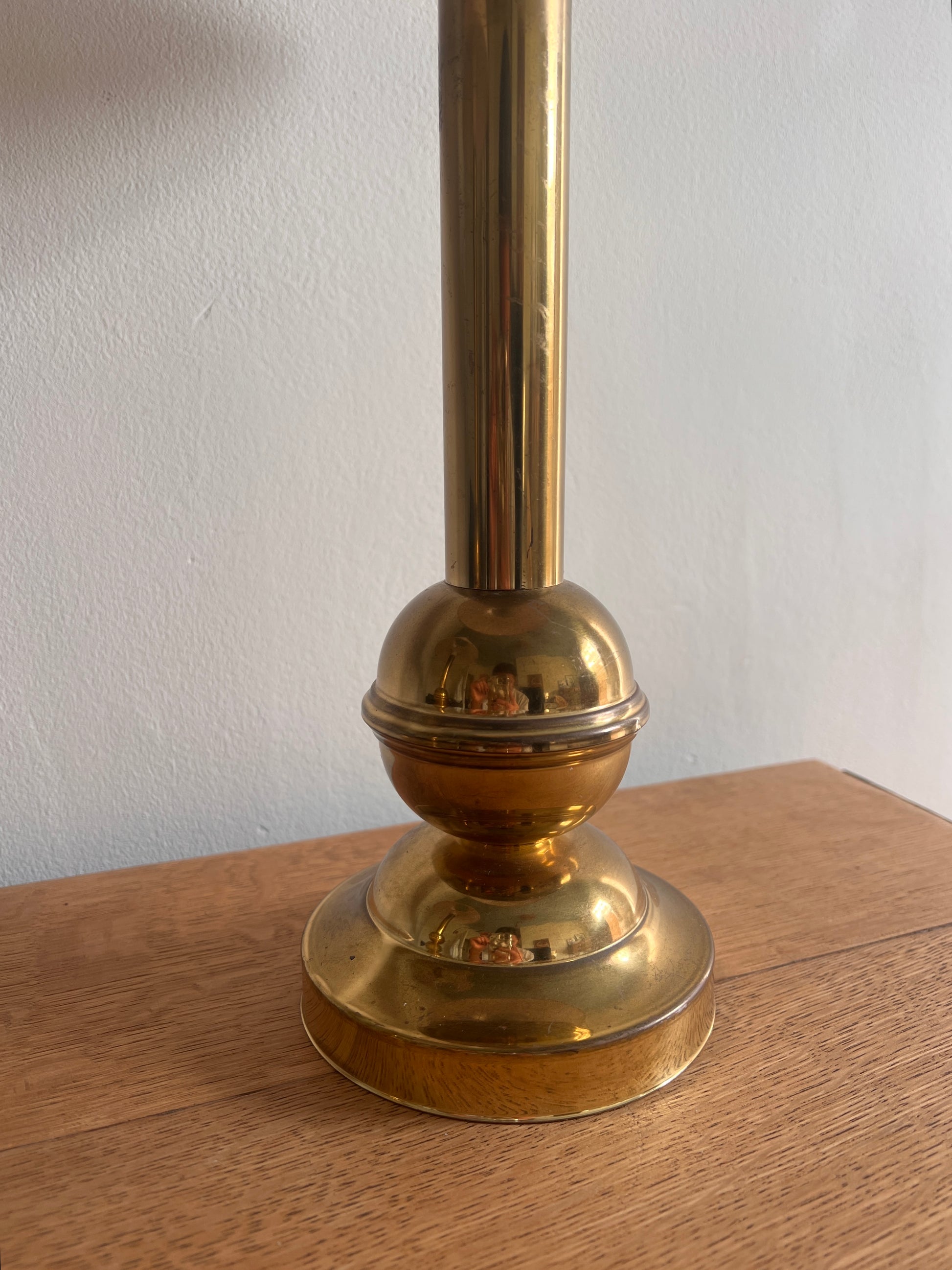 I picked up this matching pair when I travelled to Sweden recently - they are made by the Danish manufacturer Abo Randers. Particularly love the ball quirk on the stem on these lamps! These have been paired with cream linen shades and are in good vintage condition.