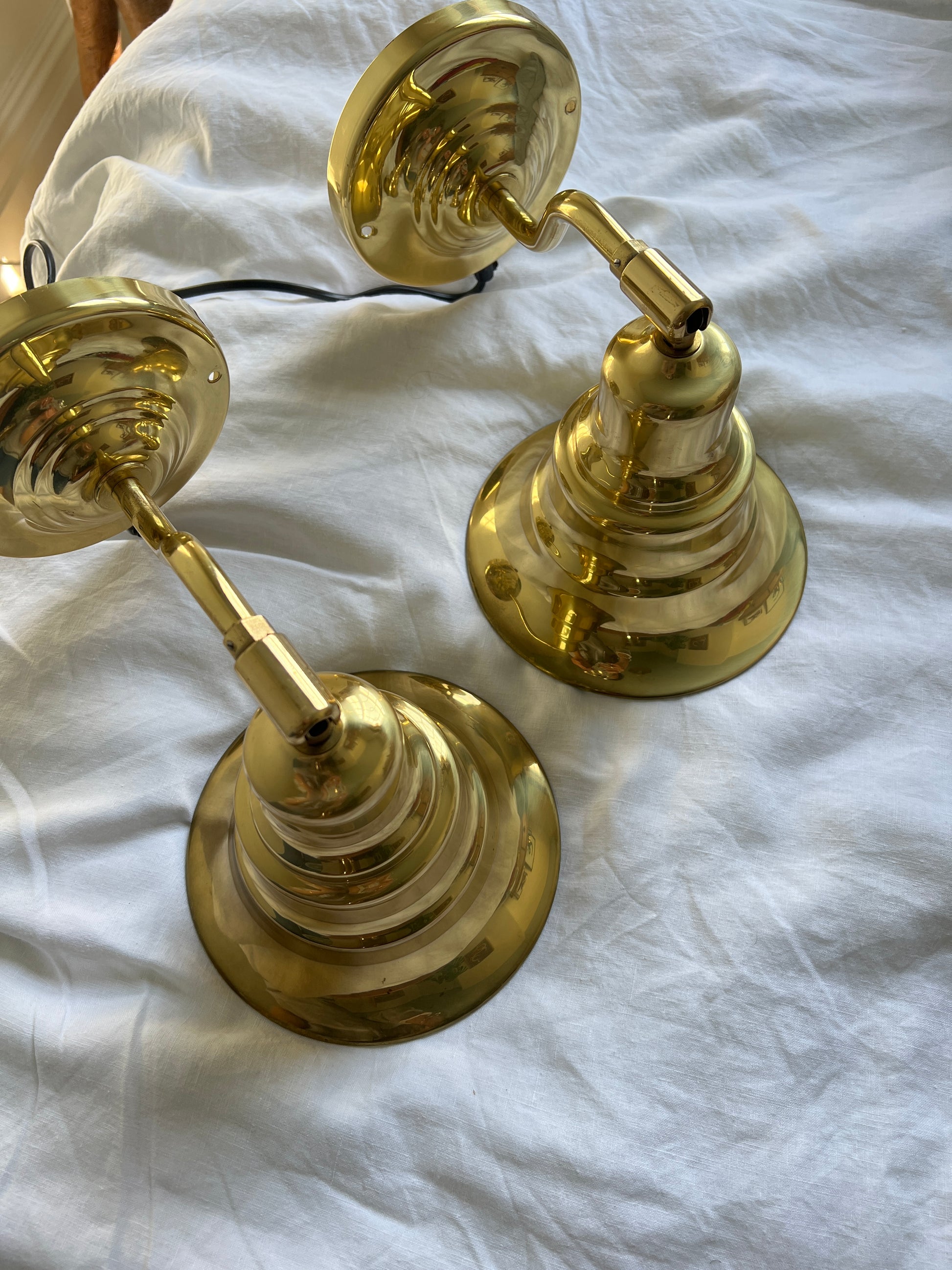 The electrics haven't been changed and have black flexes – these may look best hard wired or you could get these rewired to a flex to a colour of choice.