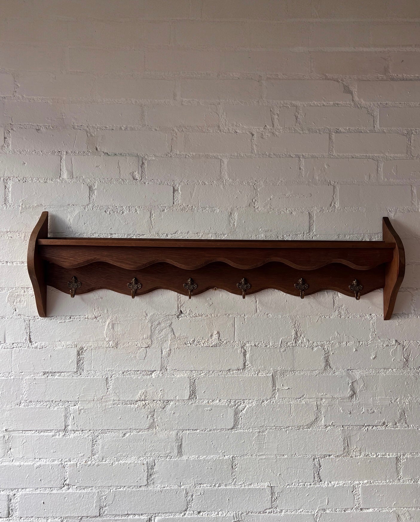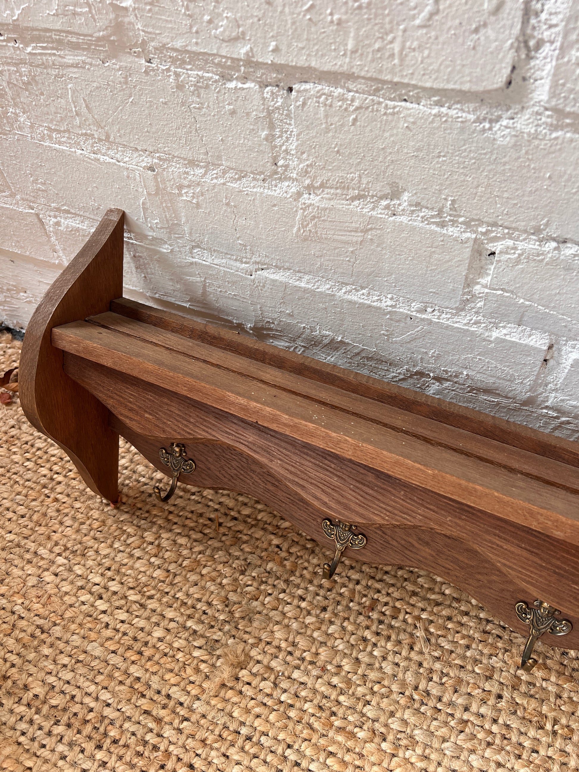 WOODEN WAVY SHELVES WITH BRASS HOOKS